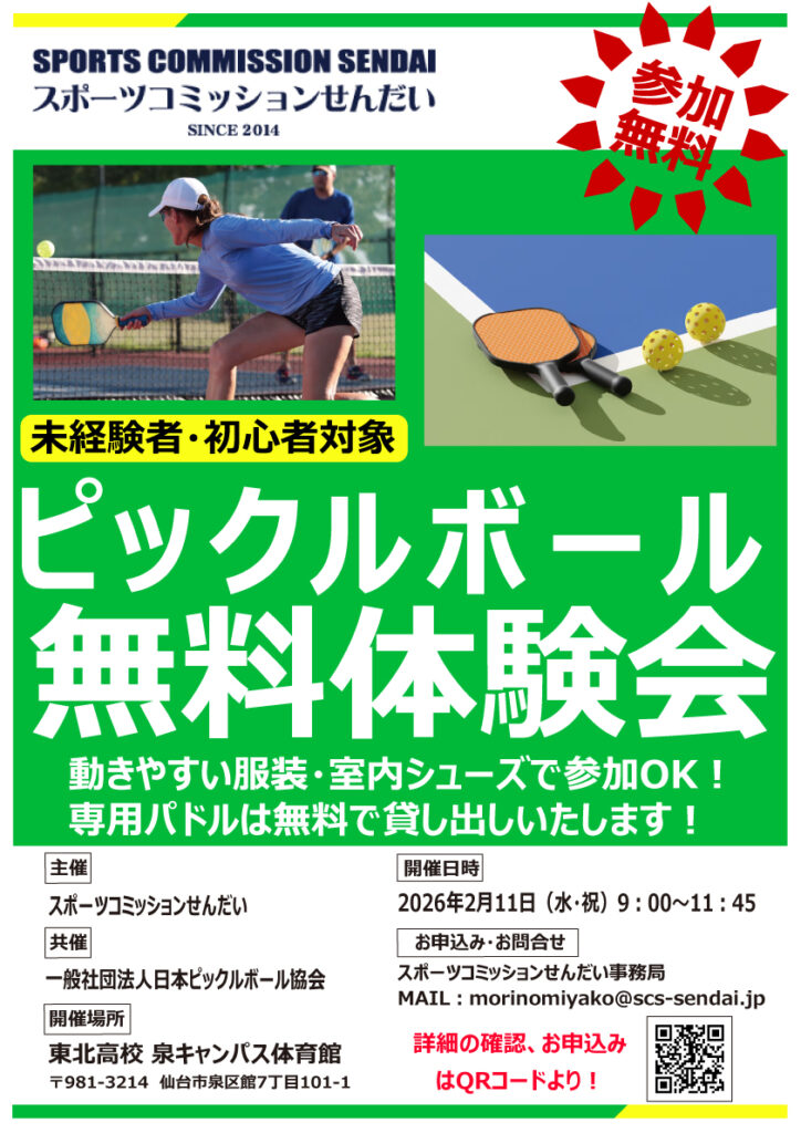 初めてでも安心!未経験者・初心者向けピックルボール体験会を2/11(水祝)に東北高等学校 泉キャンパス アリーナで開催いたします!